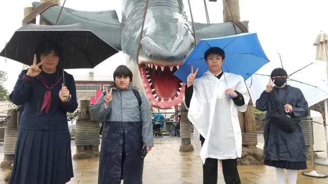 雨の中のUSJですが楽しんでます。
