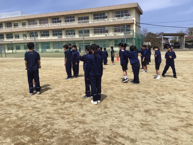 体育では、ペアで正しい「跳躍」の仕方を確認したり、