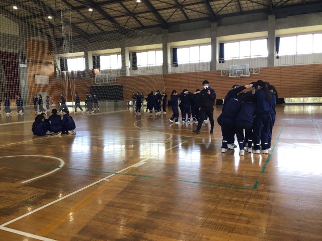 グループで輪になってチームワーク力を確かめたりしていました。
