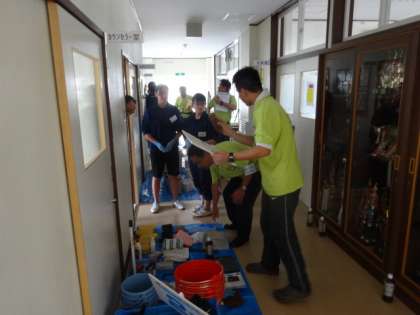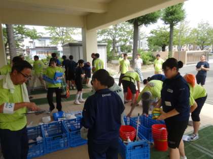 <郡山掃除に学ぶ会>の方の班リーダーの方のご指導により、用具の使い方、トイレ掃除の仕方、用具の片付け方、掃除の意義などを学びました。