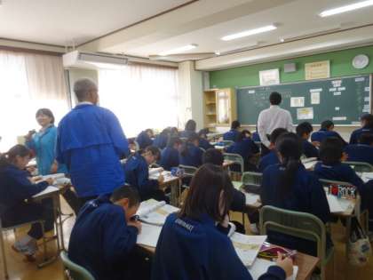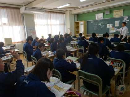 本年度の研究主題は『主体的に学び、表現できる生徒の育成』とし、研究3年次の副主題を「表現力を育てる指導の工夫」としています。現在、各教科で「意欲を高め、知識・技能を駆使できる課題設定の工夫」「円滑な思考と適切な判断を促し、根拠をもって表現させる指導・支援の工夫」「学習を自分のものにさせる振り返りやまとめの工夫」しながら確かな学力を身につけさせようと取り組んでいます。その検証として、研究授業を一人1授業以上を行い相互参観しながら、適宜全体協議会も行うことにしています。