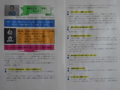 詳細につきましては、【お知らせ】の<学校だより「菜根」>の第27号をご覧ください。