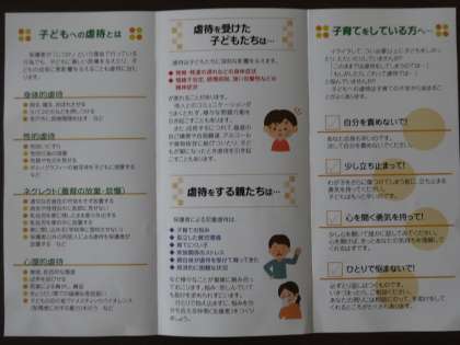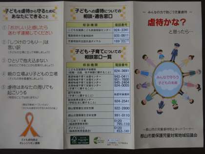 郡山市要保護児童対策地域協議会より、リーフレット『〜みんなの力で防ごう児童虐待〜虐待かな?と思ったら・・・』がきております。