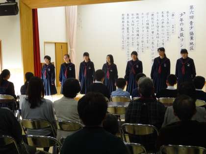 5日(土)に行われた『少年の主張コンクール薫地区大会』で、本校合唱部が美しい歌声を披露する