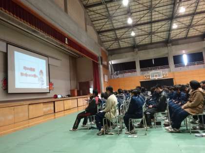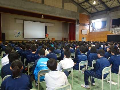 11月9日(水)13:20〜、本校体育館に於いて、第3学年を対象に『薬物乱用防止教室』が開催されました。この薬物乱用防止教室は、以下の目的のために行われたものです。