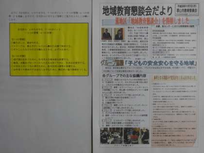 記事の内容は「薫地区「地域教育懇談会」だより(郡山市教育委員会)」「『秋の全国火災予防運動』実施中(11月9日〜15日)」です。