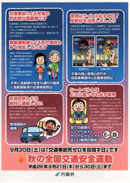 『秋の全国交通安全運動』実施中(〜30日(土))
