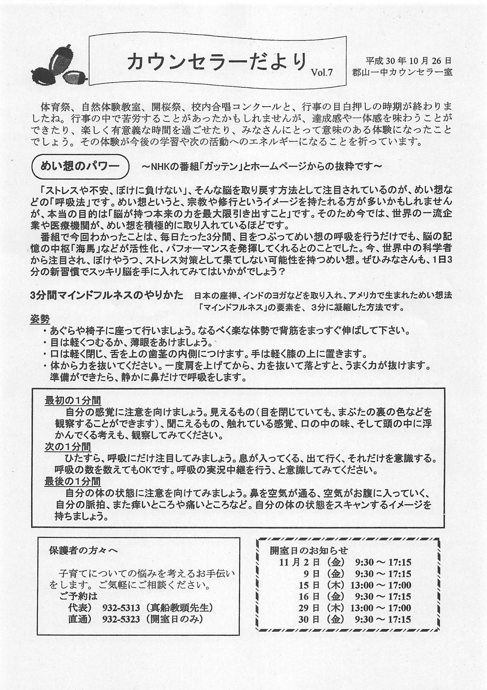 カウンセラーだよりVol.7