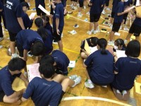 今日の2校時目、1年生は体育館で学年道徳を行いました。「自分の番 いのちのバトン...
