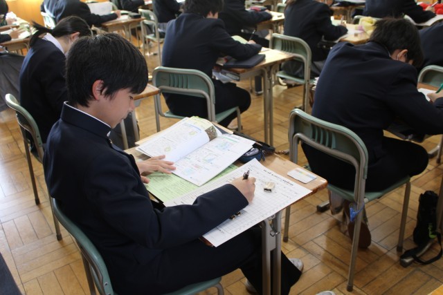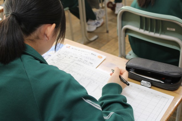 1・2年生では、今月25日に行われる第3回学力テストに向けて、計画づくりがスタートしました。2学期のまとめのテスト、頑張ってほしいと思います。