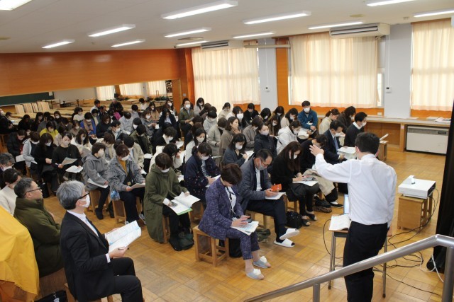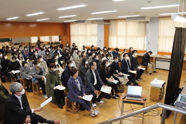 授業参観後には、学年懇談会が開かれました。特に3学年では、今年度からスタートするWeb出願に関する説明が行われ、90名近くの保護者の方々が説明に熱心に耳を傾けていました。