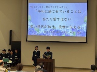 本日、ナガサキ派遣報告会が開催され、本校2年生が8月に行われたナガサキ派遣に関する研修内容をまとめ、立派に報告することができました。