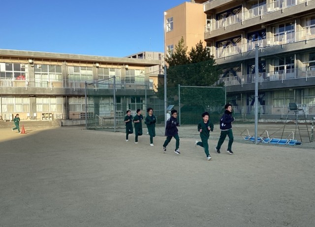 体力作りを目的として、朝のランニングタイムで15分間走、短距離走が行われています。本日は気温が低い中ではありましたが、風もなく走るのには絶好のコンディションでした。冬場に継続して行ってきたこともあり、全体的に走りもよくなってきました。