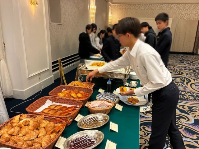 修学旅行3日目、バイキング朝食のスタートです!