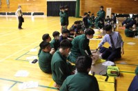 教頭先生から、「県中地区の代表として自信を持ち、仲間を信じて頑張ってきてほしい」と激励の言葉がありました。市、そして県中地区大会の地区予選を勝ち上がってきただけあり、堂々とした選手の姿を見ることができました。