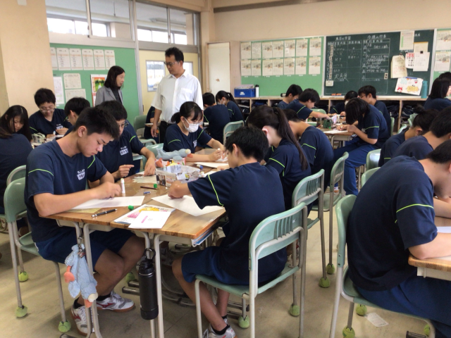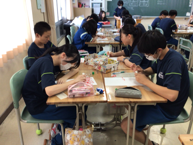 なお、今年度は縦割りを生かし、3年生が1年生に貼り方を教える場面もありました。