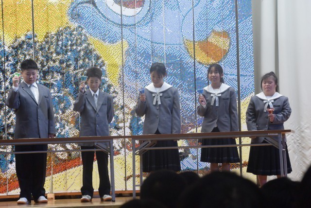 合唱コンクールに先立って、さくらぎ学級によるハンドベルの演奏がありました。