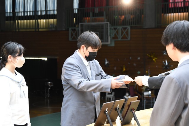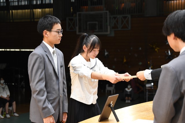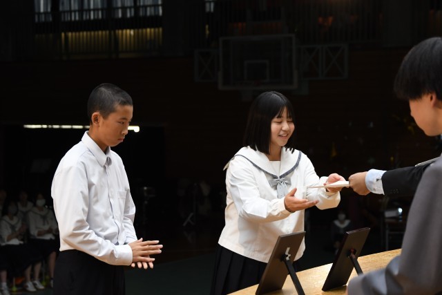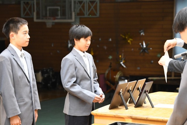 閉祭式では新聞コンクール、合唱コンクールの表彰が行われました。受賞した学級のみなさん、おめでとうございます。