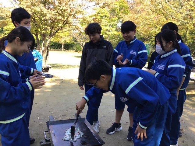 子どもたち自身で力を合わせて、火起こしから調理まで行いました。どの班もそれぞれの工夫を凝らしたおたのしみ献立を作り、笑顔いっぱいで楽しんでいました。