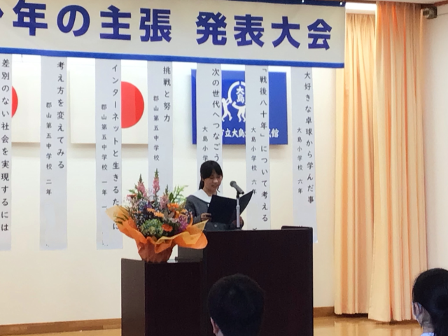 全員、自分の考えを堂々と発表することができました。最優秀賞に選ばれた生徒は、2月に行われる郡山市の「少年の主張」大会に推薦されます。