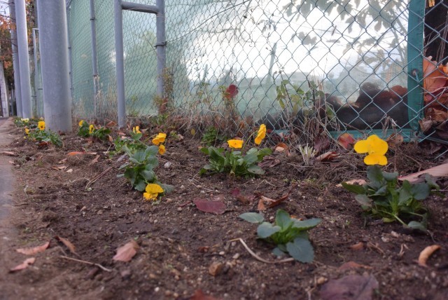 21日朝、学校の東側道路脇に地域の皆様が花を植えてくださいました。この場所を整備し花壇にしていただいき、いつも、草むしりや落ち葉拾い、清掃等を行っていただいています。本当にありがとうござます。