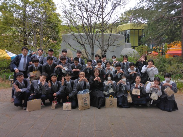 ジブリ美術館前で写真撮影をしました。これから帰路につきます。