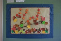 さくらぎ学級の生徒が作成した「フクロウ」をテーマにした作品です。ていねいに作られています。校長室と事務室脇に掲示しました。