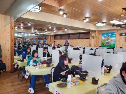 富士山五合目に到着しました。天気が良く富士山頂上、南アルプスまで見事に見えました。その後、昼食をお腹いっぱいごちそうになりました。