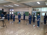 開会式で縦割りクラスの応援合戦です。盛り上がっています。