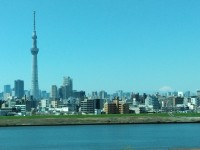 東京は快晴です!バスの窓から、スカイツリーと富士山が見えました。