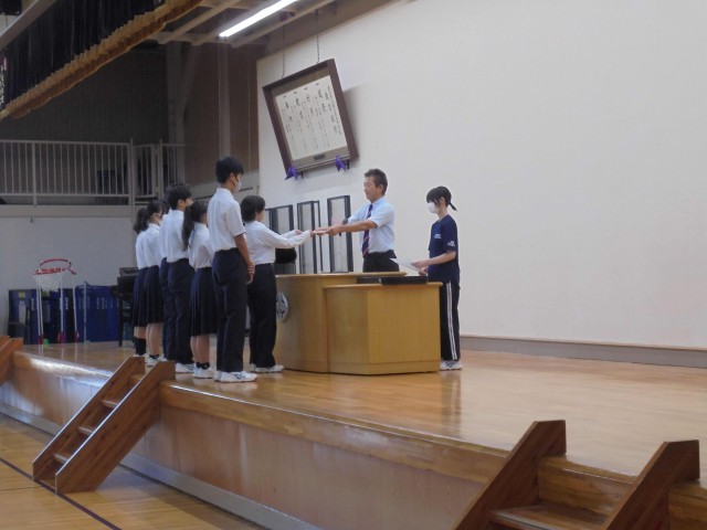 任命式では、生徒会役員、専門委員会役員、学級役員に任命状が渡されました。