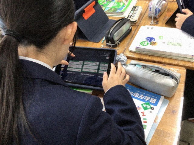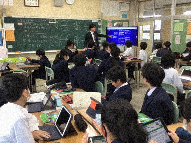 「アジア州の各地域で見られる持続可能な開発の取り組みを紹介し合おう。」という課題で社会の研究授業を実施しました。