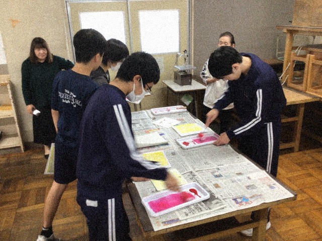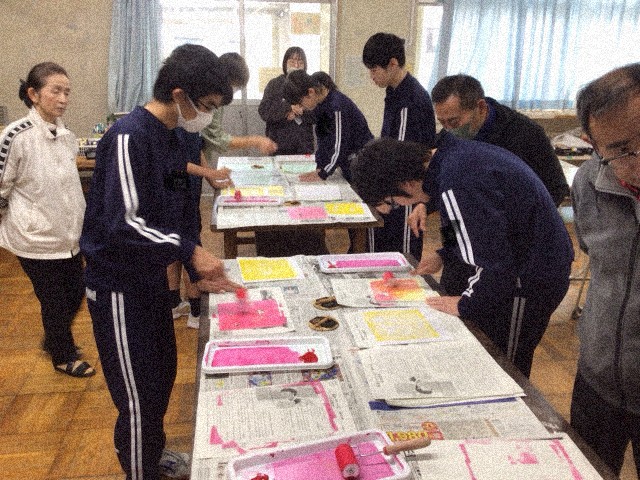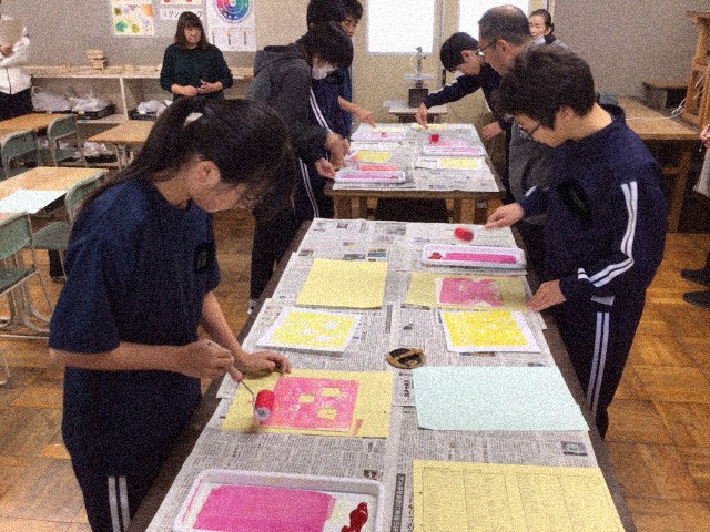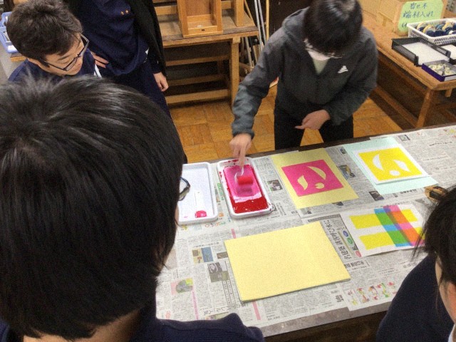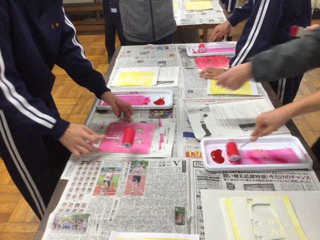 そしていよいよ自分たちの番です。一人一人順番に説明の通り上手に刷っていました。刷ることのできる場所が限られているため、静かに順番を待っていました。