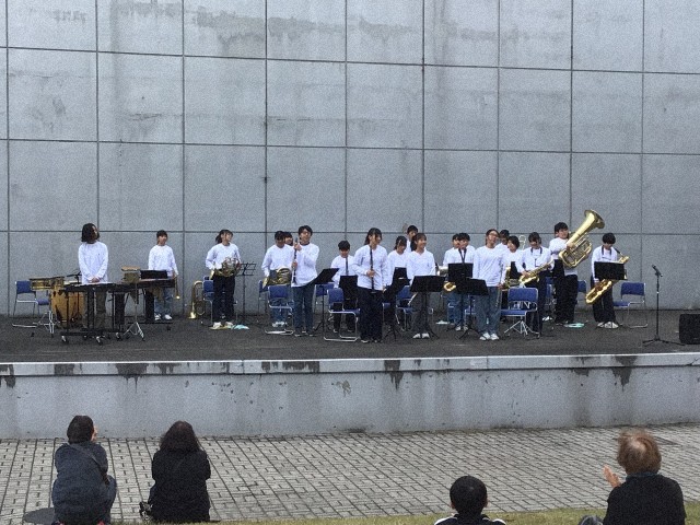 風が吹く中でしたが、3年生最後のステージ、みんな明るく楽しそうに演奏していました。