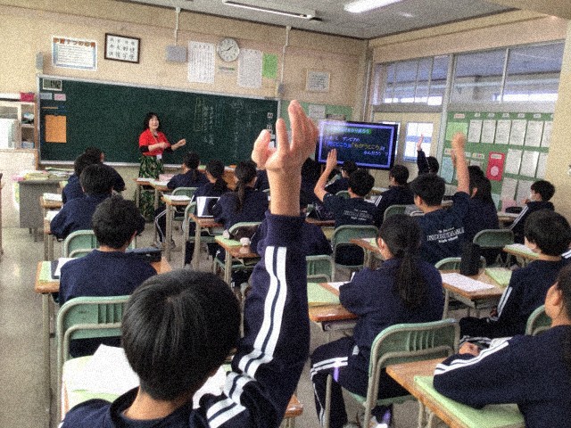 この夏、JICA教師海外研修に参加した本校教諭による授業でした。教師自身が現地で見聞したことや体験したこと、研修を通して学んだことをもとに「国際協力」についてみんなで考えました。