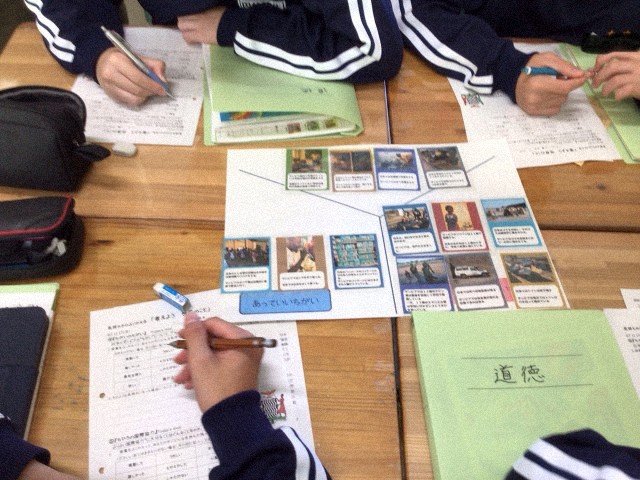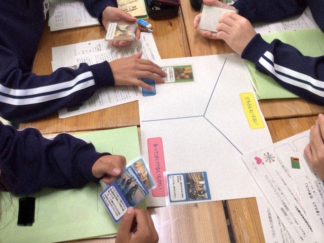 グループでの話し合いでは、「あっていいちがい、あってはいけないちがい、どちらともいえない」について、一人一人みんな真剣に考えて意見交流していました。最後には、穏やかな雰囲気の中で今の自分の気持ちを整理していました。