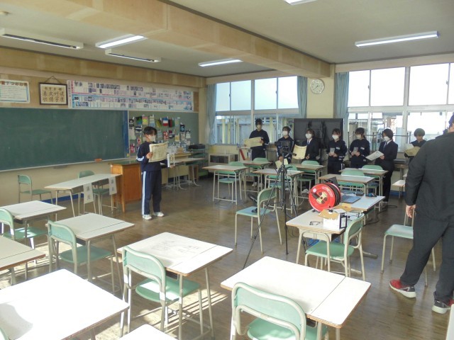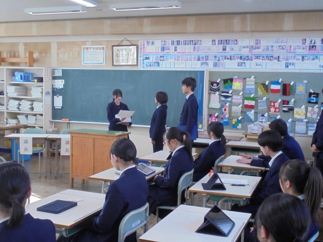 受賞報告会、後期生徒総会、卒業記念品贈呈が行われました。