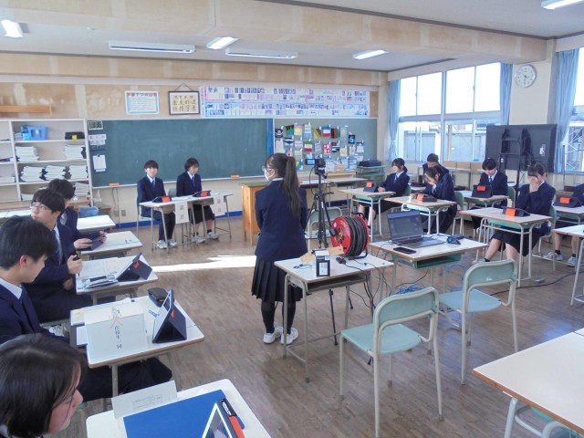 総会では、1,2年生の生徒会、委員長が、今年度の活動を振り返り、全校生へ丁寧に説明していました。