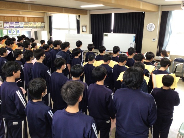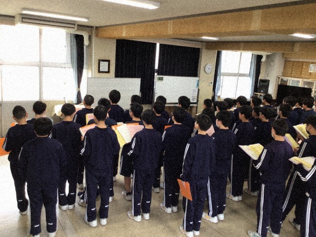 男女そして偶数・奇数に分かれて合唱練習に取り組んでいます。今日は、偶数クラスの男子の練習日でした。