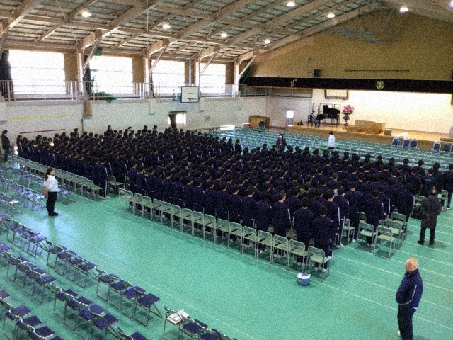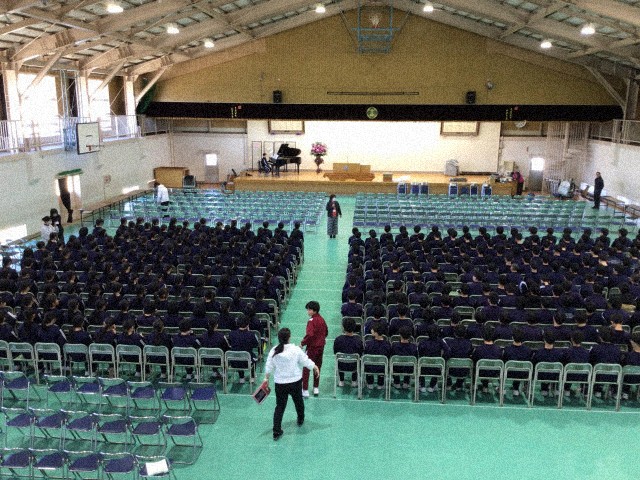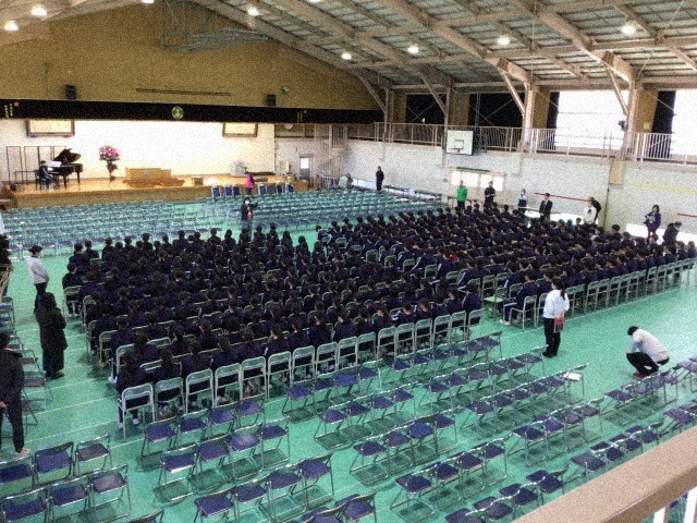 明日はいよいよ「第47回卒業証書授与式」です。明日に向けて、在校生の最後の練習です。在校生が、卒業生に素晴らしい歌声のプレゼントをしようと頑張っています。