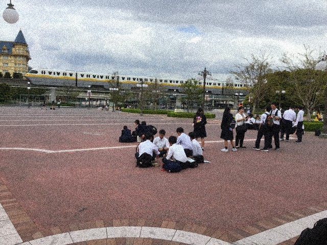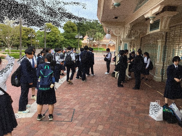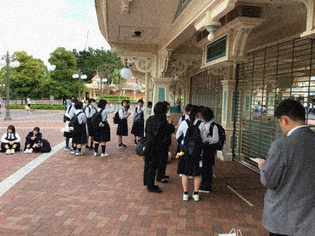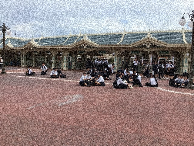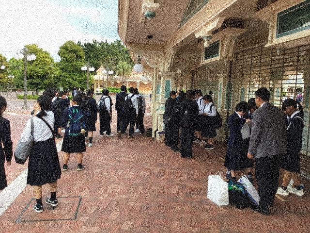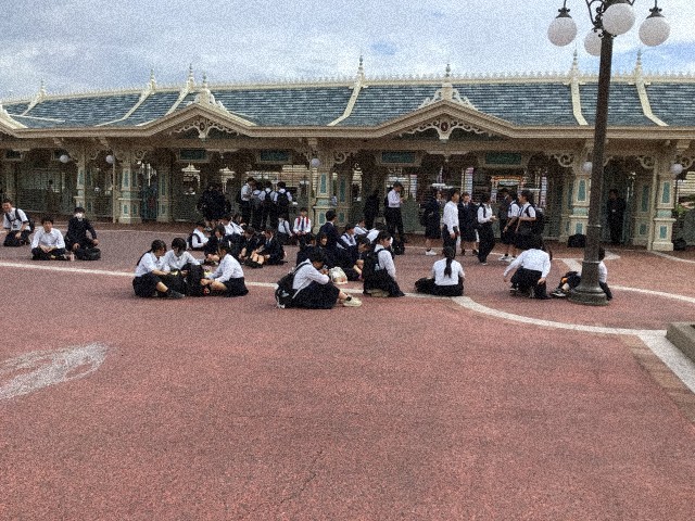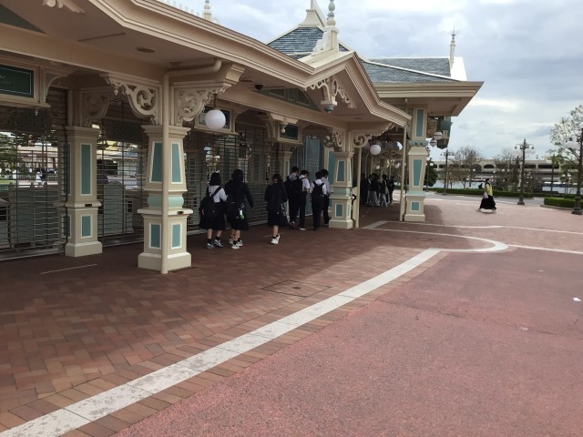 班別研修を終え、ディズニーランドに集合し、ディズニー班に編成し直し、続々と入場していきました。