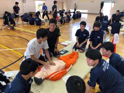 今日の5時間目は、昨日に続き心配蘇生法講習会を行いました。