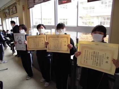 令和3年度最後の受賞報告会です。各コンクールや書きぞめなどで受賞した団体・個人が、放送で受賞の内容や感想を発表しました。これからも積極的にさまざまな活動に取り組んでほしいと思います。